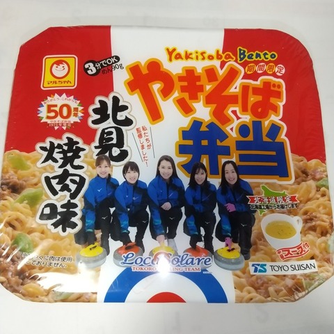 やきそば弁当50周年記念商品もどし湯で作る中華スープ付き期間限定でありながら2度発売されるのは人気商品の証?>北海道北見市の焼肉のたれをイメー···
